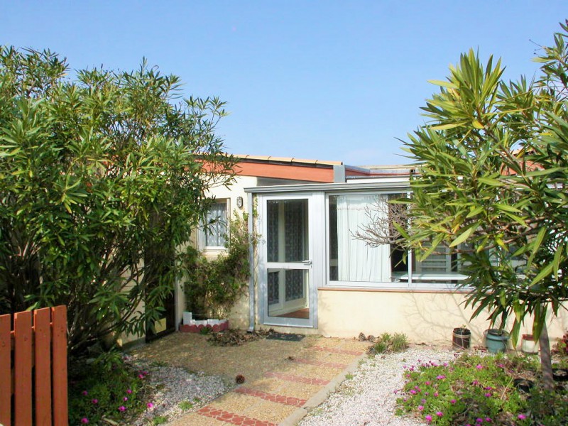 | Villa individuelle T3 de plain-pied avec véranda. Elle est composée d'un séjour avec kitchenette,2 chambres, une salle de bain et un wc séparé. Cabanon et jardinet sans vis à vis. Vendue meublée. |