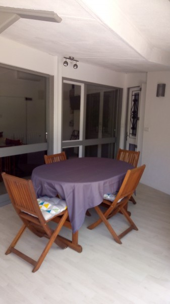 | Coup de coeur pour cette villa T2 B agrandie située secteur B. Elle dispose dun séjour avec cuisine équipée, dune véranda, deux chambres, une salle de bain avec douche, WC.Climatisation. Jardin privatif et cabanon. Honoraires à charge du vendeur. |
